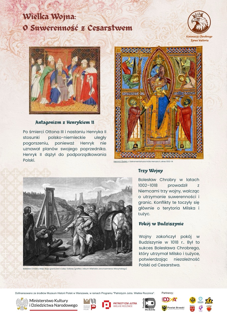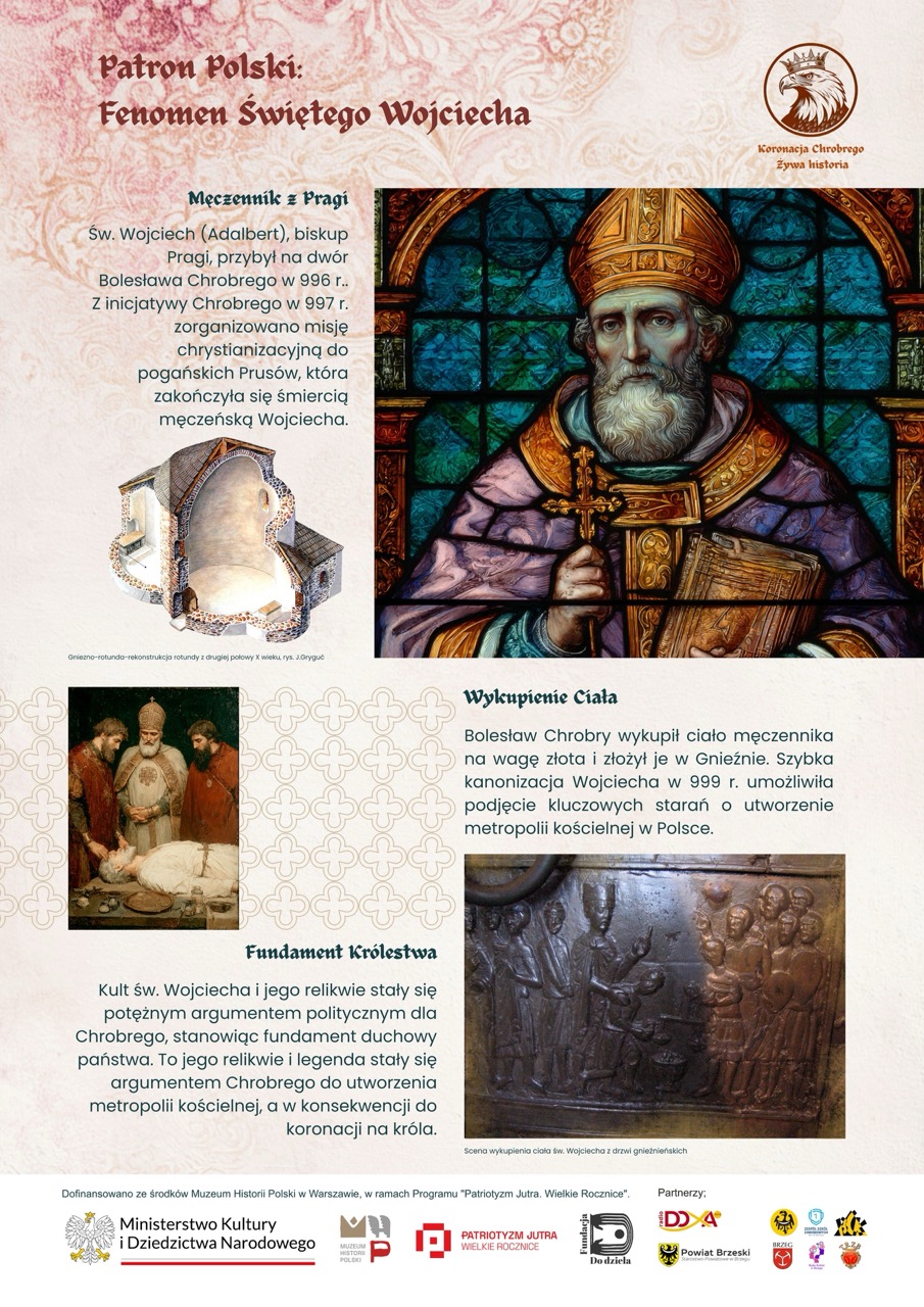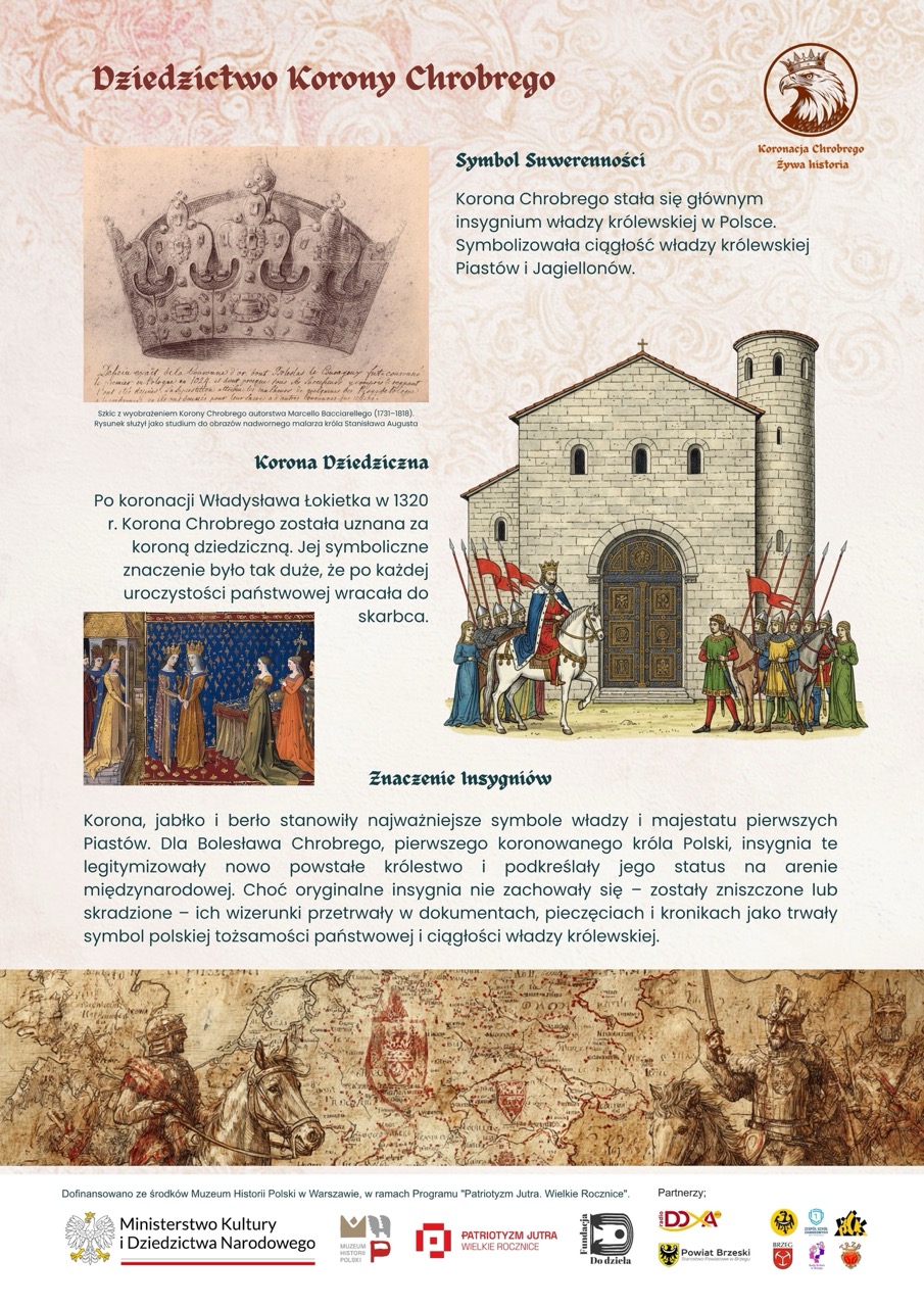 Wystawa powstała podczas warsztatów prowadzonych przez Fundację Do dzieła w Brzegu. Dzieci i młodzież wspólnie z edukatorami opracowali koncepcję dziesięciu plansz, które w przystępny i atrakcyjny sposób przybliżają realia wczesnopiastowskiej Polski, chrystianizację, budowę państwa i znaczenie aktu koronacji z 1025 roku.