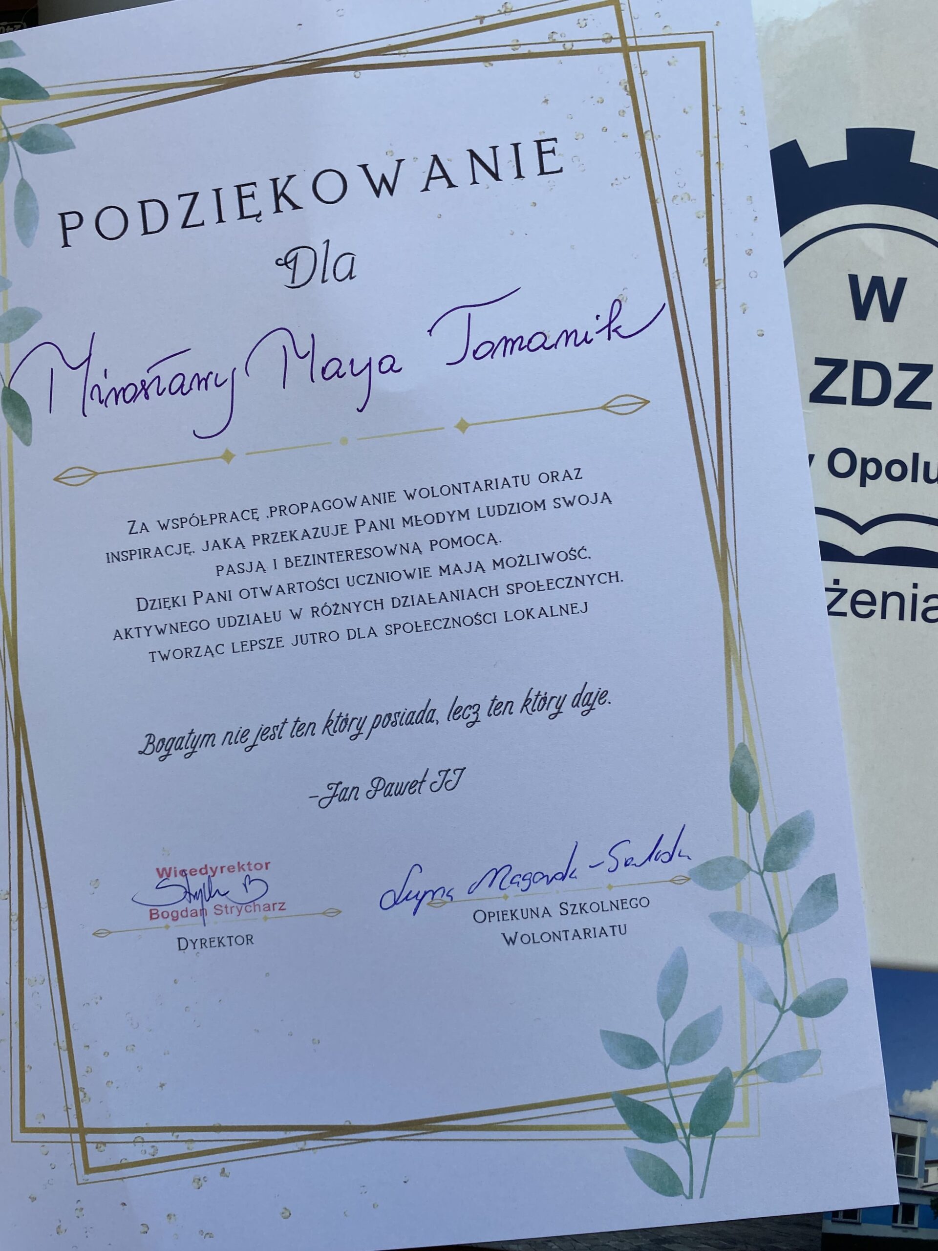 Uroczyście dziękujemy wolontariuszom